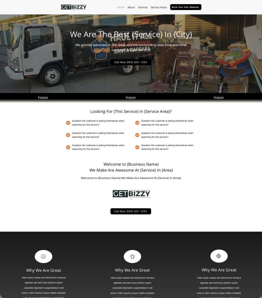 Search engines need to clearly understand what your business does and where you provide your services. This template is designed with proper headings, page sections, and structure already in place. As you follow the layout and fill in the content using the included AI prompts, your website naturally follows the structure that helps Google understand and rank local service businesses.